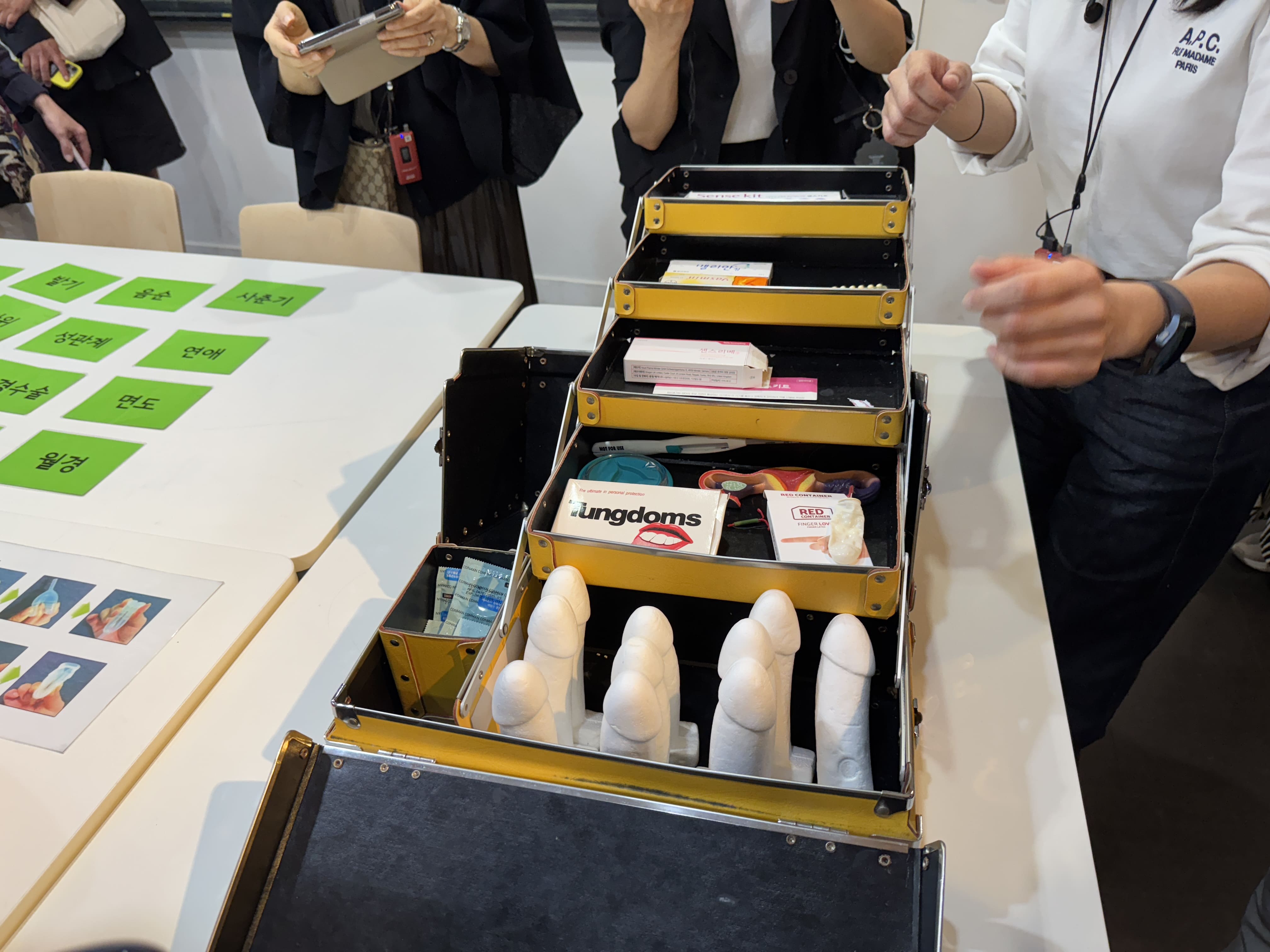 ソウル市にある「Aha! 青少年性文化センター」では、低用量ピルやコンドームなどが入った箱が置かれ、実際に触りながら学んでいくことができるようになっていました。この箱は、もともと「避妊具キット」と紹介されていたそうですが、「避妊具」という言葉は、妊娠を前提とする男女の性行為を想定しており、実際には同性間の性行為でも使用されることから、現在は「安全な性関係のためのキット」という呼び方に変わっています。言葉を少し変えるだけでも、誰を前提にしているのかが大きく変わるのです。