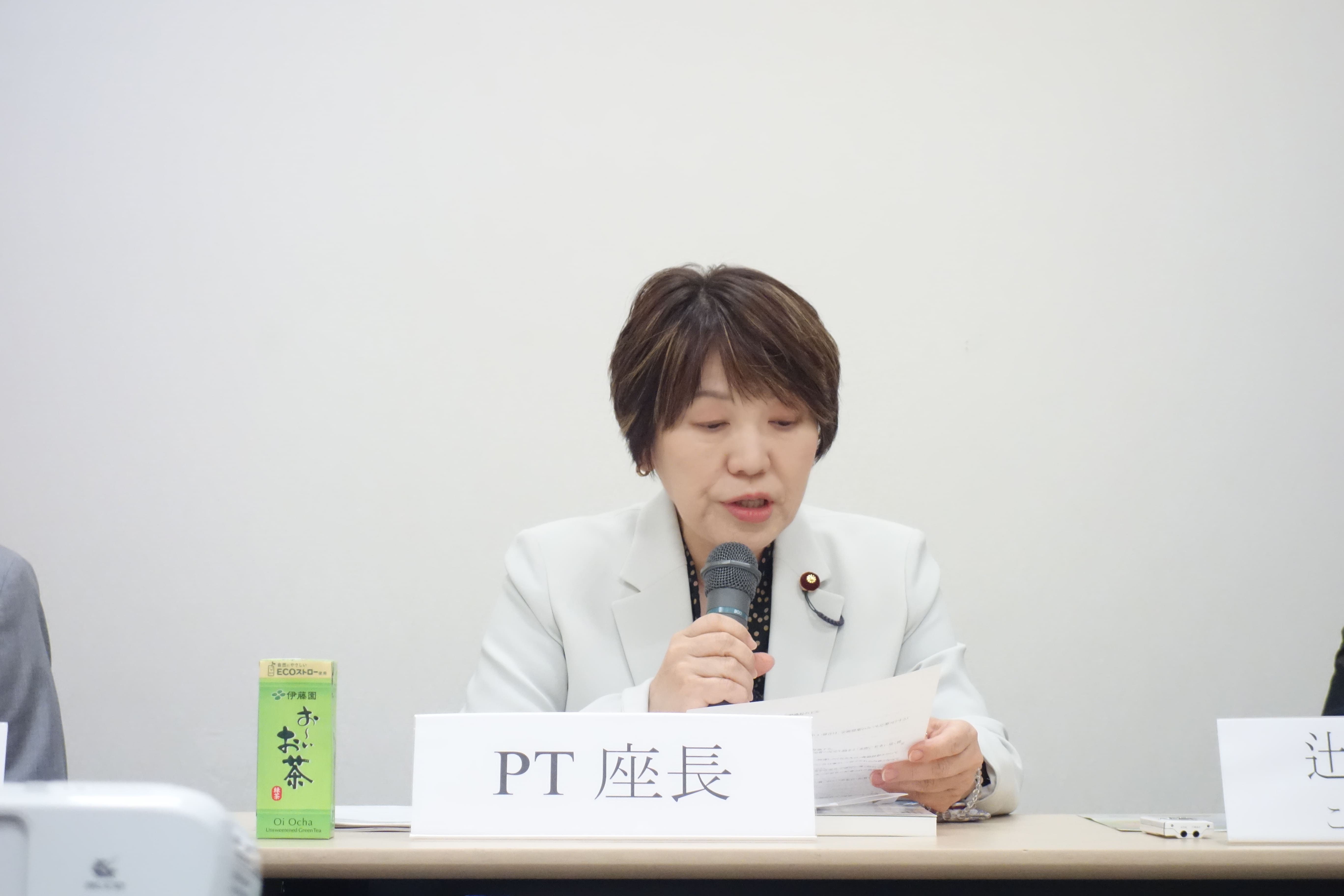 まずJPFP会長による開会挨拶の後、プロジェクトチーム座長より、現在検討が進められている「生命(いのち)の安全教育デジタル教材アイデアコンテスト」について説明がありました。
